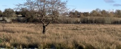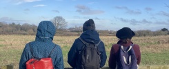 This year dawned cold, crisp and bright as we gently wandered up from New Quay along Long Marsh Lane. We stopped to observe some black-headed gulls (it’s more of a chocolate brown) who are not yet in full breeding plumage so their heads appear patchy right now. They have red beaks and legs, are smaller than other gull species, and tend to be together in larger numbers. They also have a white leading (front) edge to their wings, which is quite distinctive in flight. After a few minutes observing, I noticed they were watching us too, so we moved on to leave them in peace.